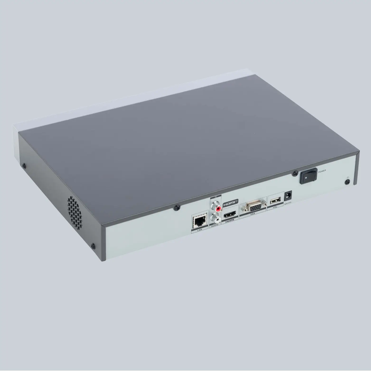 8-channel NVR supporting IP cameras, high-definition recording, remote monitoring, and secure network surveillance.